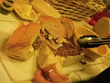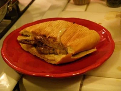 Which is why instead of starting with a pounded-within-an-in-of-its-life dry round steak, I started off with a mouth-watering boneless beef rib-eye which makes my steak sandwiches worth the 10 minutes it takes to slice up and cook up those melt-in-your-mouth rib-eye strips.