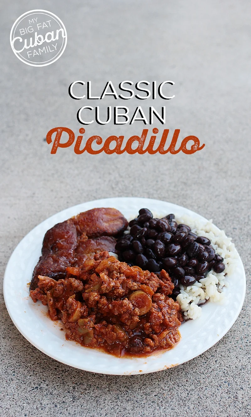 I have been reluctant to serve picadillo to American friends because it is my absolute favorite comfort food and it’s a little difficult to explain that the incredible sweet and sour taste comes from pimiento-stuffed green olives and raisins. Then the explanation becomes more complex when I start raving about how tasty it is for breakfast the next day with a fried egg.